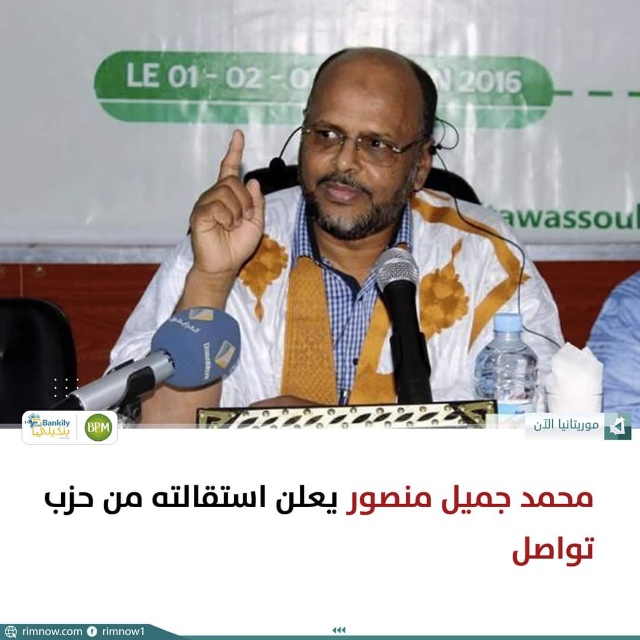 قال الرئيس السابق لحزب التجمع الوطنى للإصلاح والتنمية محمد جميل ولد منصور إن مغادرته للعمل السياسى “أمر غير وارد” وإن الخيارات أمامه لاتزال كثيرة، ومنها تأسيس مشروع جديد بالتعاون مع بعض رفاقه السابقين فى الحزب أو من خارج الحزب الذى كان يتولى تسييره، أو ممارسة العمل السياسى كشخصية مستقلة، أو تحويل موقفه الإيجابى من السلطة إلى موقف سياسى مع السلطة، لكن من غير الوارد أن يغادر السياسة وقد أخذت منه الكثير، وأعطته كذلك، لأنه فى النهاية شخصية سياسية لها رأي وموقف.